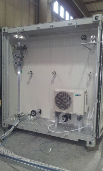 Robustness: the container has a sturdy steel structure welded self-supporting and is likely to be moved by means of the corner blocks and raised with all interior equipment, even the heaviest.