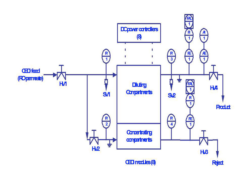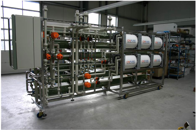 Il modulo di elettrodeionizzazione deve essere alimentato con acqua pretrattata con l'osmosi inversa: combinando queste due tecniche si ottiene acqua ultrapura (0,1-0,2 µS/cm²), partendo dall'acqua potabile.